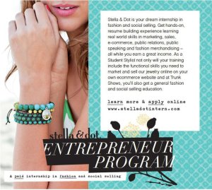 Stella & Dot is your dream internship in fashion and social selling. Why? Because instead of getting coffee for your boss, you’ll be getting hands-on, resume building experience learning real world skills in marketing, sales, e-commerce, public relations, public speaking and fashion merchandising– all while you earn a great income.