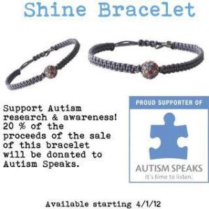 • Take the Autism “Shine”Challenge Starting March 31,2012 at 5pm this contest will begin and end April 8,2012 5pm. A random repin will be selected, Repin this Autism Awareness bracelet and tweet it @outersparkle with the hashtag #shine4autism“I’m In” or tag on Facebook (www.facebook.com/…) with the same hastag above. Happy Pinning!