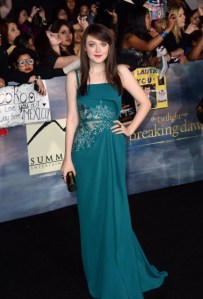 Kristen Stewart & Robert Pattinson definitely turned heads last night at the Twilight Saga:Breaking Dawn part 2 official Red Carpet Premiere held in L.A on November 12. Let’s start with Kristen’s spectacular nude colored strapless with sheer fabric flowing gown by Zuhair Murhad,finishing off the look with side swept Glam hair and red lips. Robert was just as dashing in a Deep Forest Green Gucci suit. Nikki Reed looked Gorgeous as always in her strapless platinum Versace gown with embellishments across the fitted bodice. Ashley Greene looked oh so pretty in her head to toe warm color palate, wearing a blush tone dress custom-made by Donna Karan asymmetric with a cascading hemline.