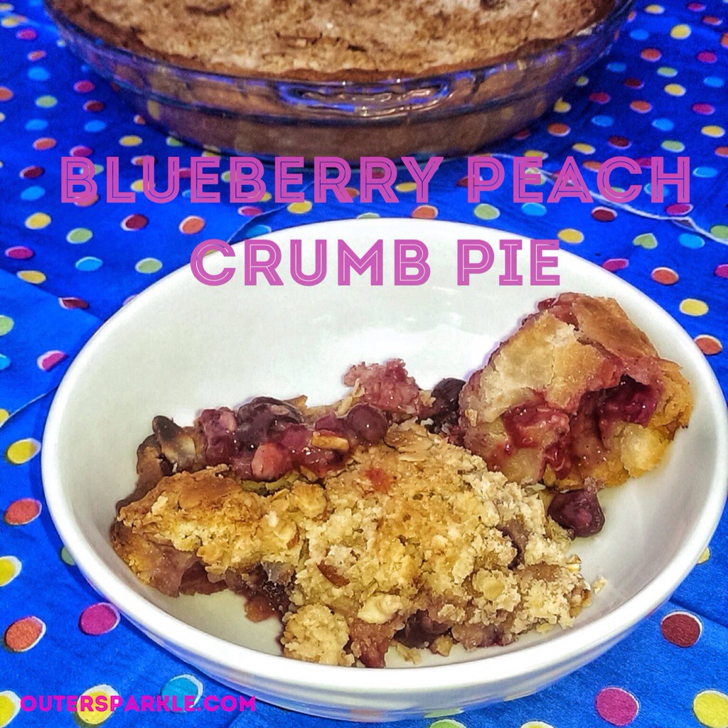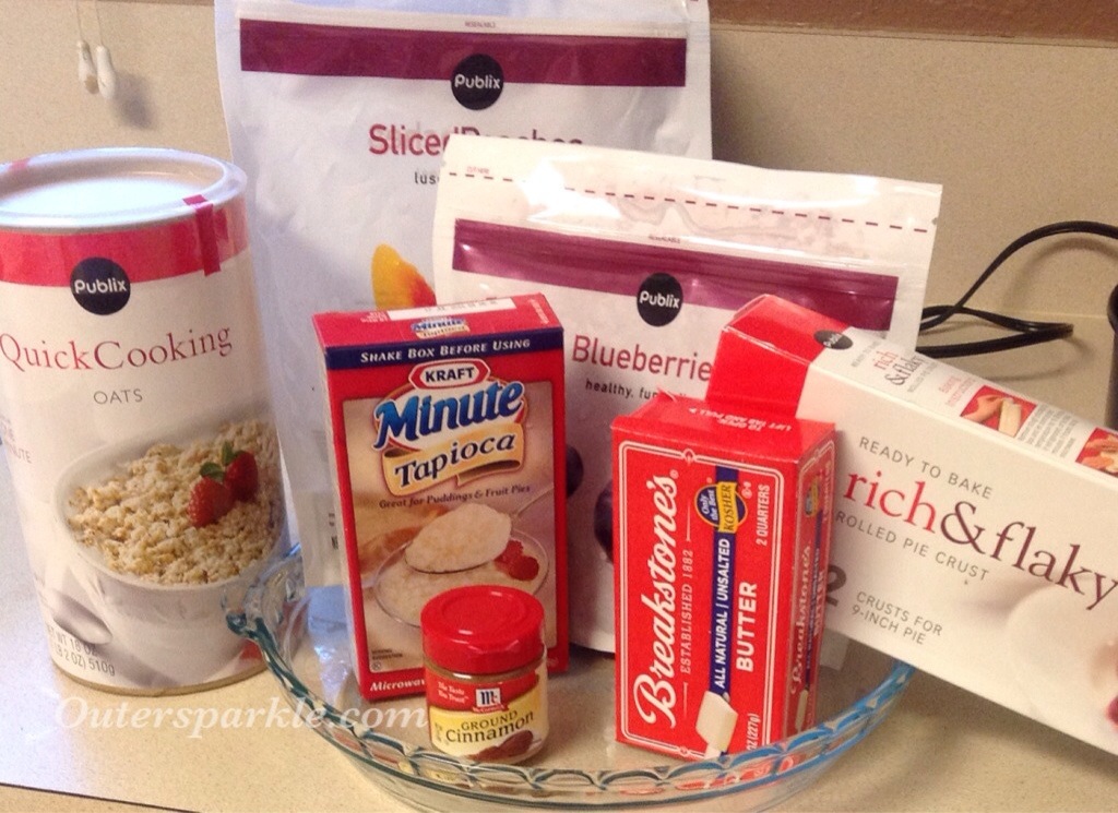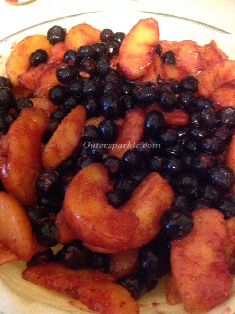 I was watching Giada at Home and the episode was “Stars and Stripes” with 4th of July the next day, I really had No intention of baking or cooking as we had no plans. I have the say the recipe for the Peach and Blueberry Crumb Pie looked pretty easy as I watched and looked real yummy! So after much thinking and contemplation I decided to jot down the ingredients I didn’t have on hand.