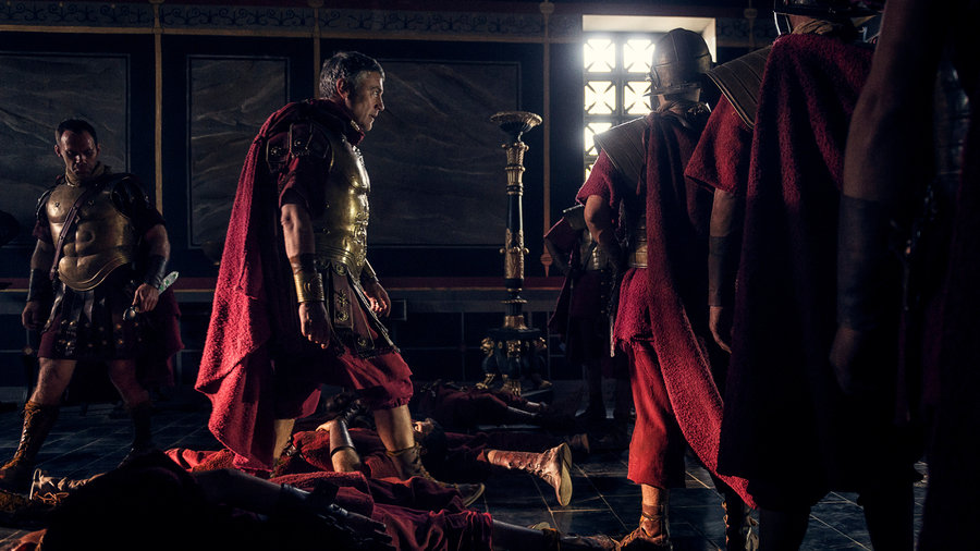 Pilate stands alone in his quarters when Caiaphas enters, angry about his murdered men. Pilate cuts him off quickly. “The Roman Empire prospers, Caiaphas, not because it consumes lesser civilizations but because it embraces and forms partnerships with them,” he says. “At the highest level that can only happen in a spirit of mutual trust.” Pilate brings in the Roman guards who abandoned their post at the tomb, and has each of them strangled to death for Caiaphas to witness. “Consider this a lesson in civic administration,” the Governor tells the shaken High Priest. After all, Pilate is firm, not fair.
