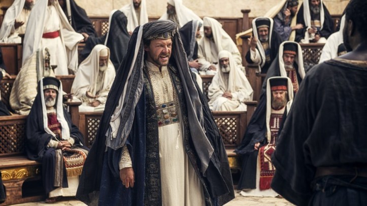 Realizing the severity of Pilate’s plan, Caiaphas sits in the Temple chamber, ignoring Annas’ suggestion to delay the trial of Jesus’ followers until the assassin is caught. “The Temple has to be seen to be strong now,” Caiaphas counters. “We need a quick trial to end their disruption.”
