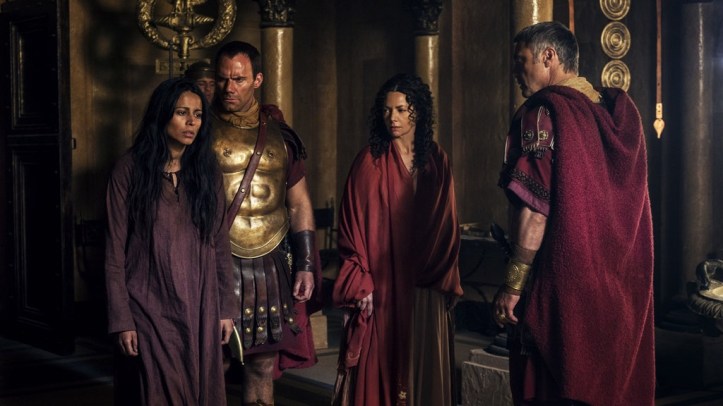 In exchange for Leah’s information, Claudia again asks Pilate for a good turn, releasing Joanna, and again he refuses. Furious, Claudia returns to the prison to release Joanna herself, but they’re met by Cornelius on the way out. It’s not long before they’re standing in front of Pilate, who fears Joanna is infecting the mind of his wife, just as she did Tabitha’s. When Joanna insists her interest is only empathy, Pilate gives her a choice: she can set Joanna free by strangulation or send her to the cross. Calling her husband a monster, Claudia tells him not to make her choose. Joanna shuffles forward, insisting she will choose her fate, so Pilate commands Cornelius to carry out the strangulation. Joanna forgives Cornelius his actions in the name of Christ. Afterwards, Cornelius methodically washes the blood off his hands, but it’s all too much and he breaks into tears.