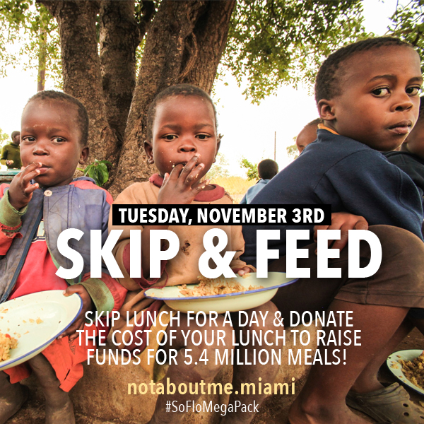 On November 3rd, in solidarity with the millions of severely malnourished people all over the world, I will be joining the Skip & Feed challenge. This movement asks that you skip lunch and donate what you would’ve spent to the Feed My Starving Children South Florida Community MobilePack through our Notaboutme.miami website. The funds raised will go towards packing 5.4 million meals for hungry children during our January Megapack event.