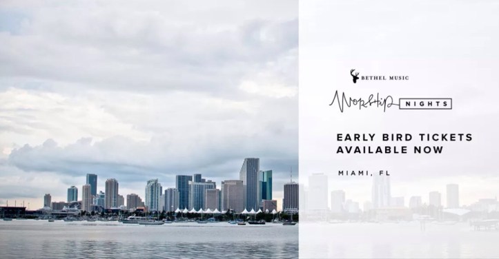 If you know me well, than you’d know that I’m stoked about this event already! Hillsong and Bethel Music are my top worship bands. I unfortunately missed last years Miami worship night due to a vacation. Early bird tickets are available as today to experience Bethel Music Worship Nights. In October 2016, Bethel Music is coming to the East Coast U.S.A. for a special Worship Nights Tour to record our next live album with guest worship leader, Francesca Battistelli and speakers, Lisa Bevere and Havilah Cunnington. Worship Nights exist to partner with what God is doing in your city and see Heaven invade earth. On October 20th, 2016, join us for Worship Nights in Miami, Florida.