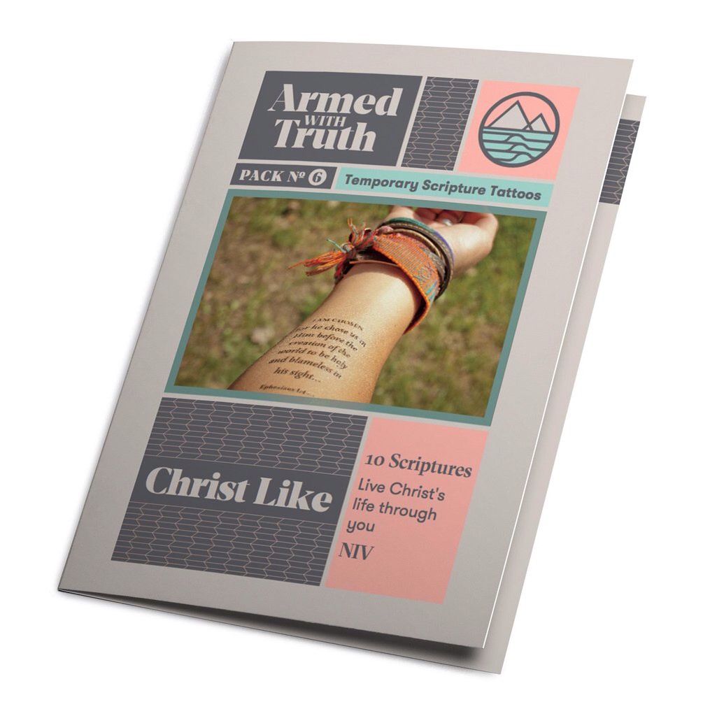 I recently received a pack of Armed with Truth scripture tattoos to review. I selected the Christ Like pack cause it had my favorite scripture verse Matthew 5:16 and a Be Still designer pack, which comes with 2 tattoos, there are 17 versions of packs to select from.